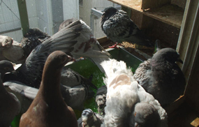 A. 通風には気を配った方がいいでしょう。鳩は体温がもともと高い上、高温に弱い生き物です。そのため風にあたる、あたらないは非常に重要になります。私の鳩舎も北と南で風が通り抜けやすいようにしてあります。しかも屋上ということもあり、暑さでまいってしまうようなことはありません。とはいえ地面に鳩舎を建てていられる方でも、風がきちんと抜けられるような構造になっていれば問題ないと思います。とにかく風通しがいいよう心がけてください。
